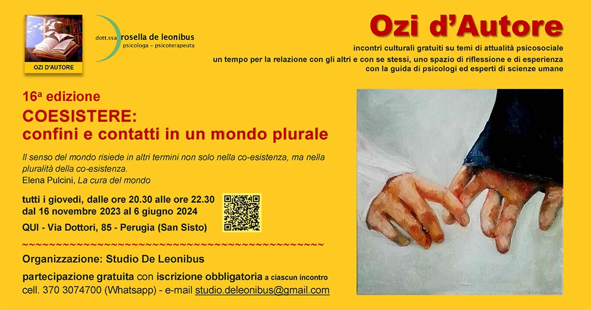 Sono psicologa e psicoterapeuta, iscritta all’Ordine degli Psicologi della Regione Umbria n. 872. Svolgo il mio lavoro sia presso il mio studio privato a Perugia, che online.
